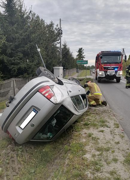 Dachowanie samochodu osobowego w miejscowości Dobra gm. Staszów