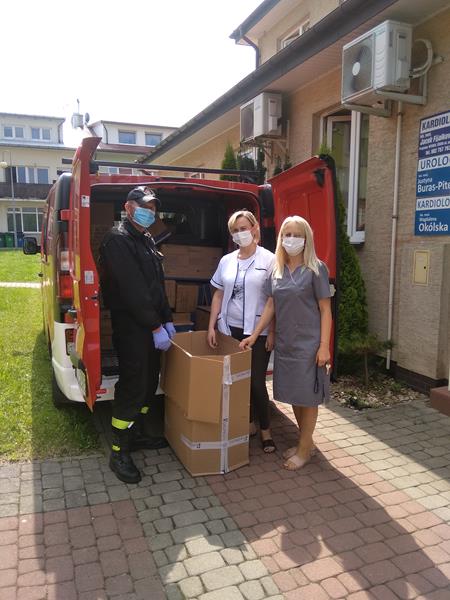 27 lipca br. staszowscy strażacy realizując polecenie Wojewody Świętokrzyskiego zakończyli rozdysponowanie środków ochrony indywidualnej do placówek medycznych na terenie Powiatu Staszowskiego. ŚOI pochodzące z Rządowej Agencji Rezerw Strategicznych zostały przekazane do 28 punktów medycznych na terenie powiatu staszowskiego.