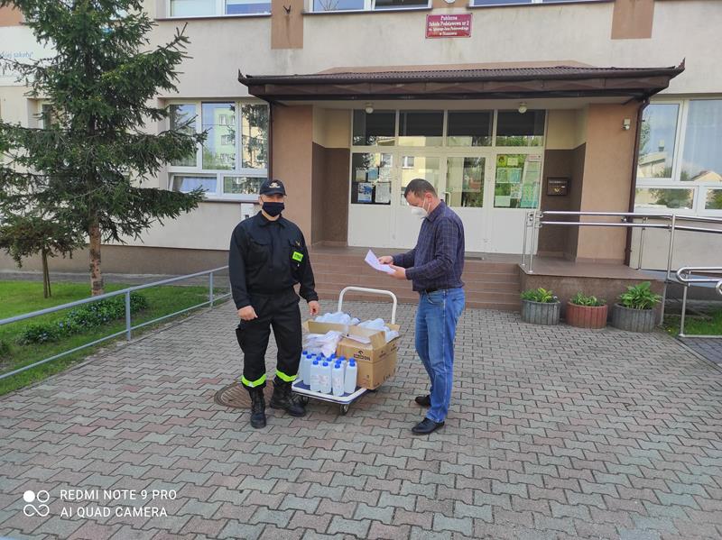 21 maja 2021 roku staszowscy strażacy realizując polecenie Wojewody Świętokrzyskiego rozdysponowali maseczki ochronne oraz płyn do dezynfekcji rąk i powierzchni do szkół podstawowych na terenie powiatu staszowskiego.
