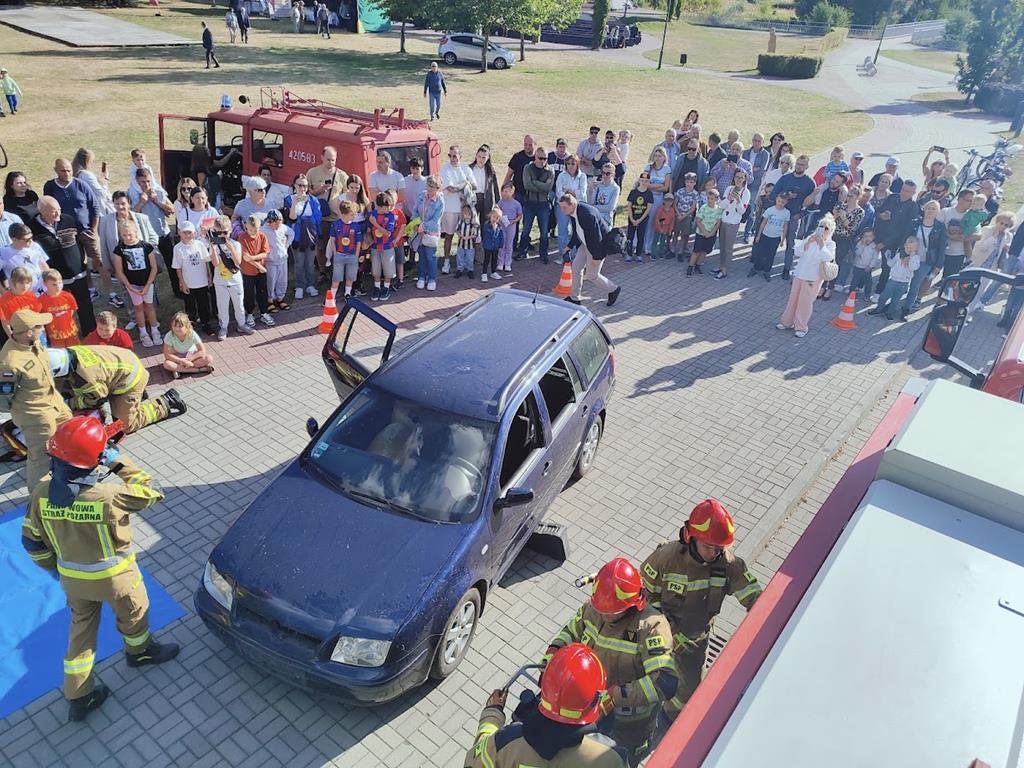 Dużą atrakcją dla dzieci i młodzieży była możliwość obejrzenia i samodzielnego przetestowania sprzętu wykorzystywanego w akcjach ratowniczych, a także udział w gaszeniu symulowanego pożaru budynku.