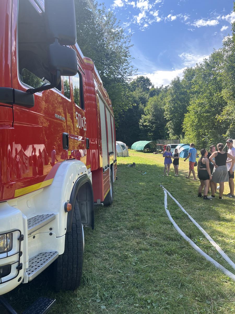 3 lipca 2025 roku przedstawiciele Komendy Powiatowej Państwowej Straży Pożarnej w Staszowie odwiedzili obóz harcerski jeździecko-rowerowy w Kurozwękach organizowany przez Młodzieżowy Dom Kultury "Dom Harcerza" z siedzibą w Krakowie.