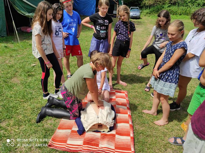 W trakcie spotkania omówiono metody postępowania na wypadek zagrożeń mogących wystąpić na terenie obozu z uwzględnieniem zjawisk szczególnie niebezpiecznych tj: gwałtowne burze i silne porywy wiatru, omówiono także jak unikać zagrożeń związanych z wypoczynkiem nad wodą. Przedstawiono metody i sposoby udzielania pierwszej pomocy i zaprezentowano procedury postępowania w razie wypadku i sytuacji najbardziej prawdopodobnych na obozowisku.