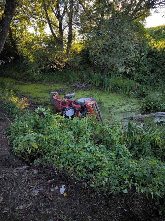 Po dojeździe na miejsce zdarzenia zastępów straży pożarnej stwierdzono, że mężczyzna jest przygnieciony przez ciągnik, który częściowo znajduje się w wodzie. Poszkodowany był przytomny. Działania JOP polegały na zabezpieczeniu miejsca zdarzenia, ewakuacji poszkodowanego spod ciągnika poprzez podniesienie maszyny za pomocą wyciągarki, przekazaniu poszkodowanego ratownikom ZRM oraz zabezpieczeniu lądowiska dla helikoptera LPR.