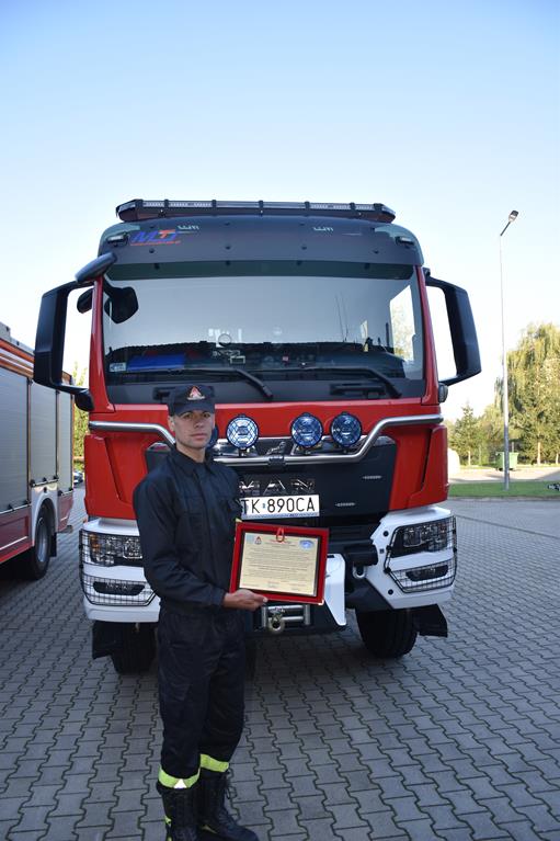 Nagrodę pieniężną w imieniu Komendanta Głównego Państwowej Straży Pożarnej gen. brygadiera Andrzeja Bartkowiaka osobiście wręczył Zastępca Świętokrzyskiego Komendanta Wojewódzkiego PSP - st. bryg. Grzegorz Rajca. Nagroda została przyznana funkcjonariuszowi który, zdobył po raz kolejny tytuł mistrza Europy strażaków w biegu ulicznym na dystansie 10 km, podczas zawodów rozgrywanych we Włoskiej miejscowości Feltre.