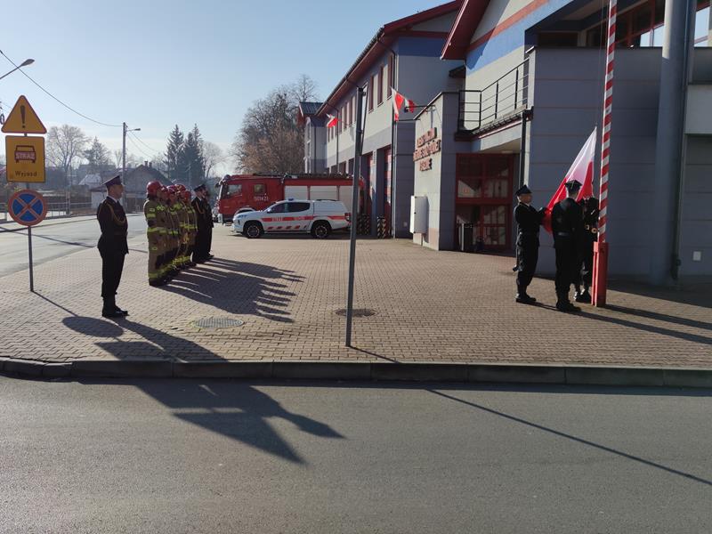 W Komendzie Powiatowej PSP w Staszowie dokonano uroczystego podniesienia flagi państwowej oraz w ramach ogólnopolskiej akcji „Niepodległa do hymnu” odśpiewano hymn państwowy.
