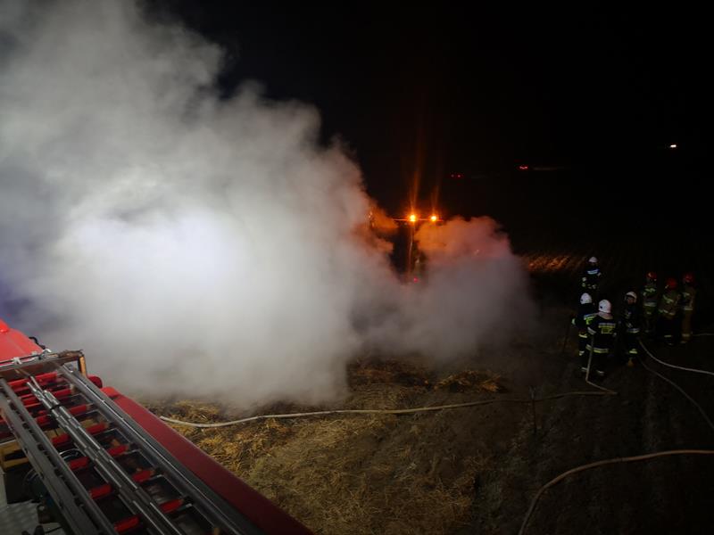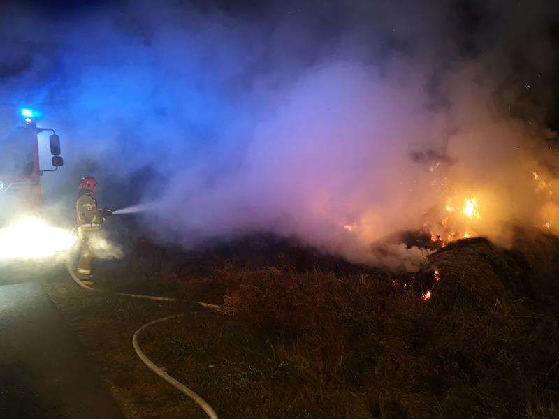 Pożar bel słomy w stogu, w miejscowości Kurozwęki