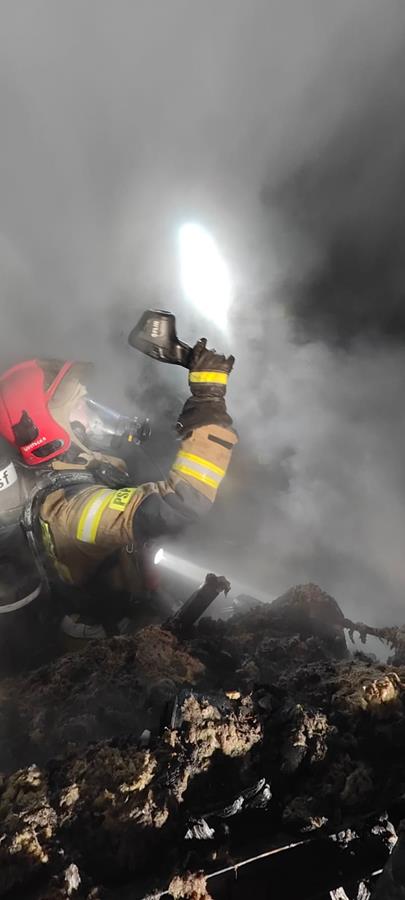 Po ugaszeniu pożaru strażacy przystąpili do prac rozbiórkowych nadpalonej konstrukcji oraz oddymienia pomieszczeń. Pogorzelisko dokładnie sprawdzono kamerą termowizyjną, wykluczając obecność ukrytych zarzewi ognia. Działania trwały blisko 5 godzin angażując 7 zastępów straży pożarnej, 26 ratowników.