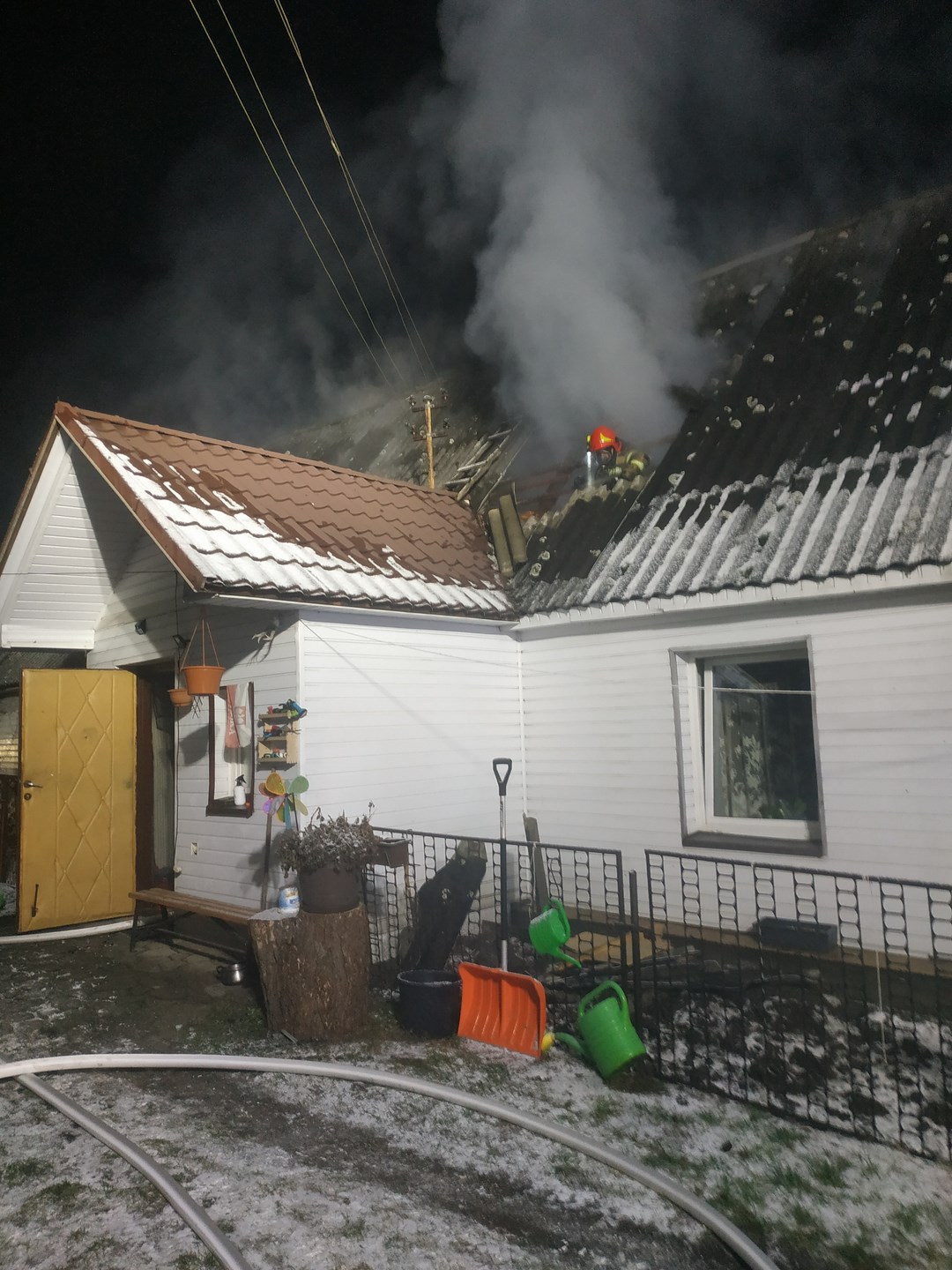 POŻAR BUDYNKU MIESZKALNEGO W MIEJSCOWOŚCI STASZÓW, UL. JAŁOWCOWA