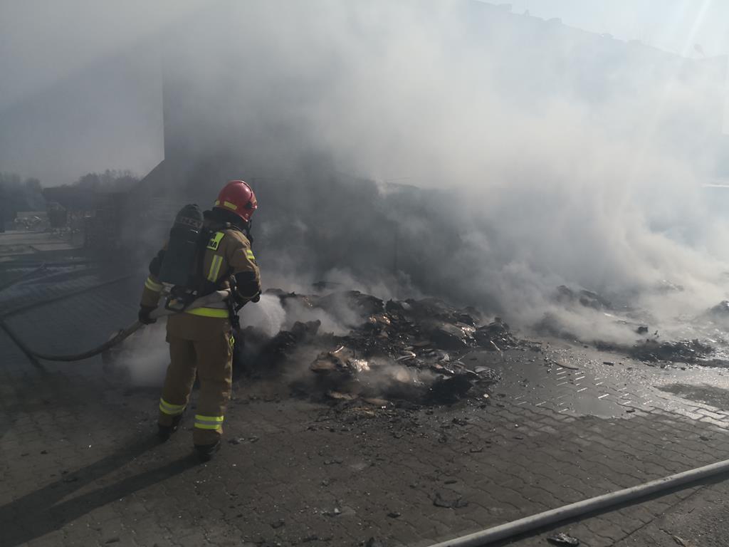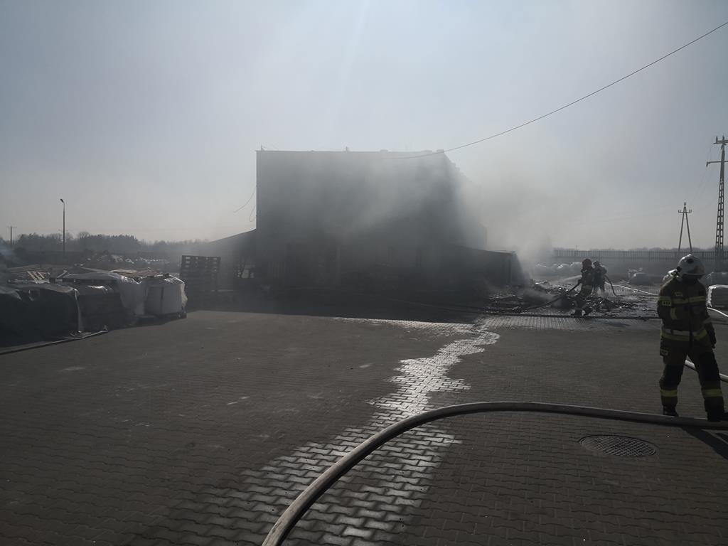 Pożar opakowań kartonowych na terenie huty szkła gospodarczego w Krzywołęczy
