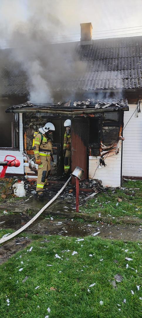 i oddymiania obiektu. Nadpalone elementy konstrukcji budowlanej wyniesiono na zewnątrz i przelano wodą.