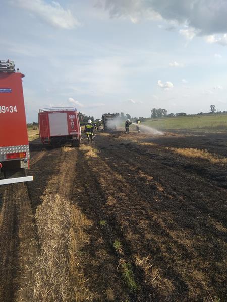 Po przybyciu na miejsce zdarzenia zastępów straży pożarnej stwierdzono, że doszło do pożaru prasy rolującej oraz słomy na powierzchni ok 25 arów. Działania zastępów straży pożarnej polegały na zabezpieczeniu miejsca zdarzenia oraz podaniu dwóch prądów wody na palącą się maszynę rolniczą i słomę.