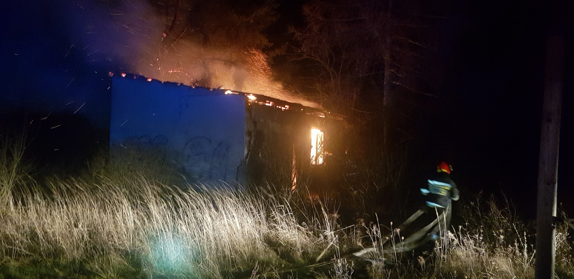 Pożar pustostanu w miejscowości Podmaleniec, gm. Staszów