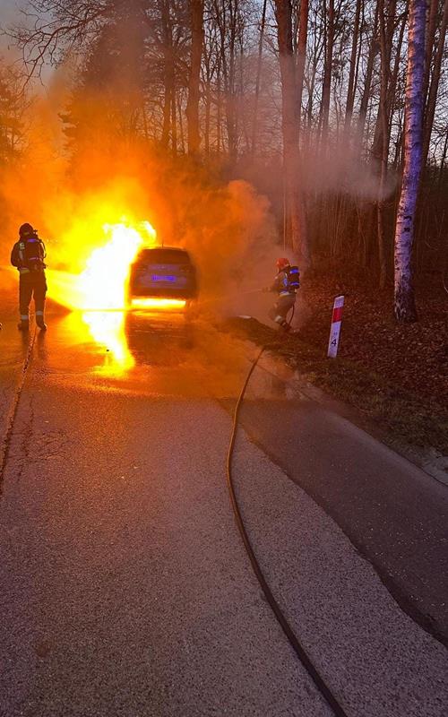 Po przybyciu na miejsce zdarzenia strażacy potwierdzili pożar samochodu osobowego, który znajdował się na poboczu drogi wojewódzkiej. Pojazdem podróżowała jedna osoba, która przed przybyciem służb ratowniczych opuściła samochód o własnych siłach. Osoba ta nie odniosła obrażeń.