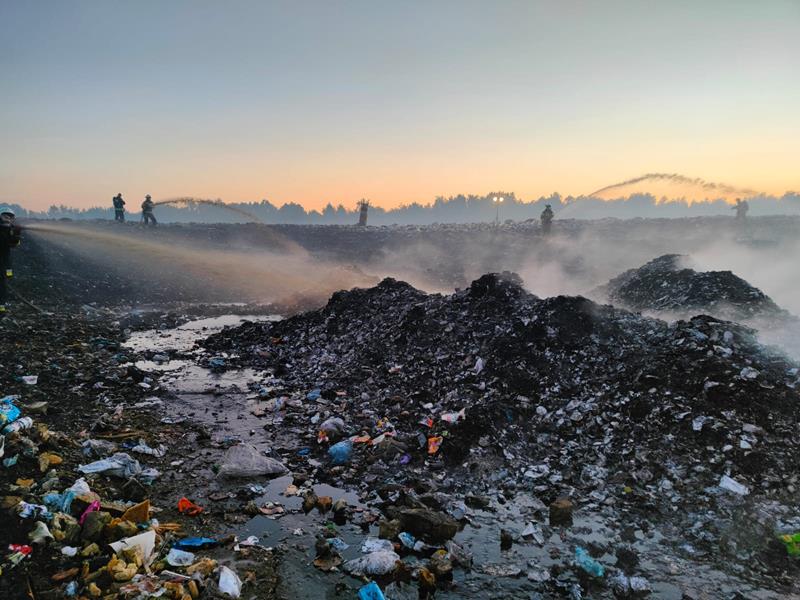 Do zdarzenia niezwłocznie zadysponowano jednostki z powiatu staszowskiego oraz jednostki z powiatu buskiego. Po przybyciu na miejsce zdarzenia Kierujący Działaniem Ratowniczym ustalił, że pożarem objęte jest 50 arów frakcji podsitowej na składowisku odpadów komunalnych oraz 20 arów suchej trawy. Działania ratowników polegały na zabezpieczeniu miejsca zdarzenia, podaniu siedmiu prądów wody w natarciu na palące się składowisko. Po lokalizacji pożaru przystąpiono do przesypywania odpadów przy użyciu ciężkiego sprzętu z jednoczesnym dogaszaniem. Pogorzelisko sprawdzono kamerą termowizyjną na obecność ukrytych zarzewi ognia.