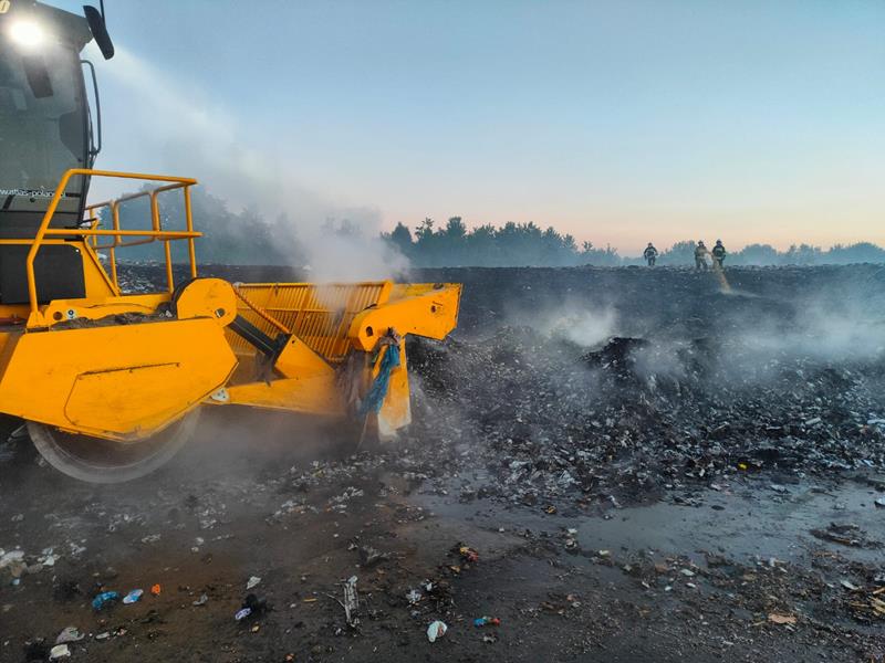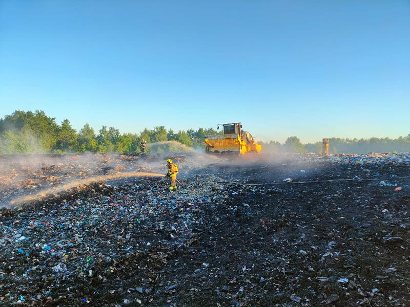 Pożar składowiska odpadów w Grzybowie