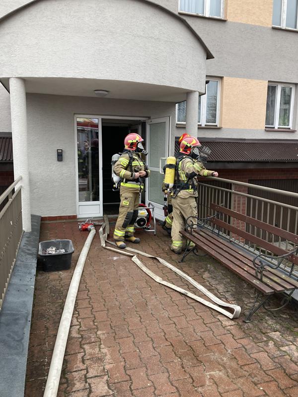 Miejsce pożaru sprawdzono kamerą termowizyjną na obecność ukrytych zarzewi ognia - wynik negatywny. Po przewietrzeniu klatek schodowych i stwierdzeniu braku zagrożenia ewakuowane osoby powróciły do swoich mieszkań. Mieszkania budynku sprawdzono miernikiem wielogazowym na obecność występowania gazów niebezpiecznych - brak zagrożenia.