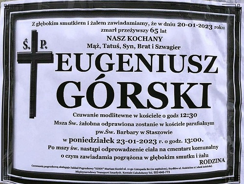Komenda Powiatowa Państwowej Straży Pożarnej w Staszowie z głebokim żalem zawiadamia, że zmarł kpt. w st. spocz. Eugeniusz Górski, były funkcjonariusz KP PSP w Staszowie.