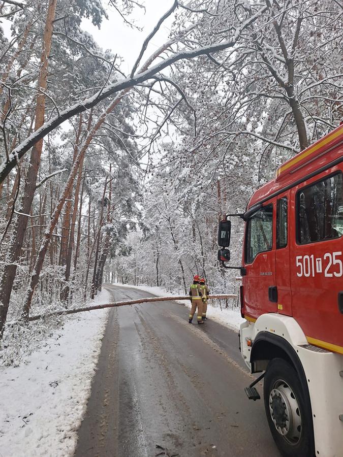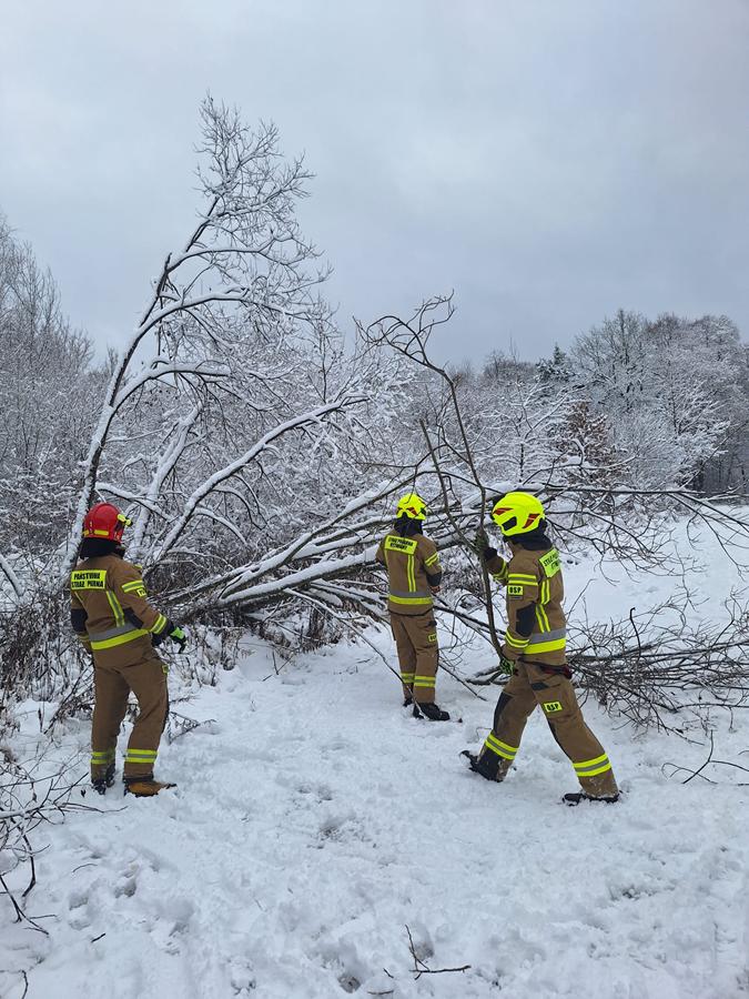 Miniony listopadowy weekend okazał się wyjątkowo wymagający dla staszowskich strażaków. Intensywne opady śniegu spowodowały liczne zdarzenia na terenie powiatu. Pierwsze zgłoszenie związane z trudnymi warunkami atmosferycznymi wpłynęło do Stanowiska Kierowania Komendanta Powiatowego Państwowej Straży Pożarnej w Staszowie około godziny 6:30 i dotyczyło powalonego drzewa w miejscowości Rudniki.