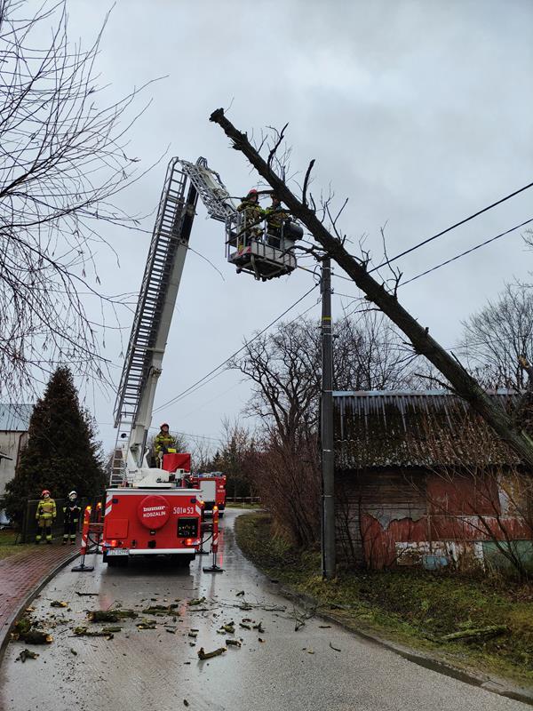 W ośmiu zdarzeniach strażacy usuwali powalone drzewa, które blokowały przejazd drogami publicznymi oraz stwarzały bezpośrednie zagrożenie dla nadjeżdżających pojazdów. Trzy zdarzenia dotyczyły zabezpieczenia zerwanych dachów. Jedno zdarzenie dotyczyło zabezpieczenia zerwanych linii energetycznych.
