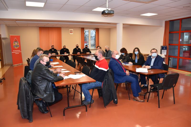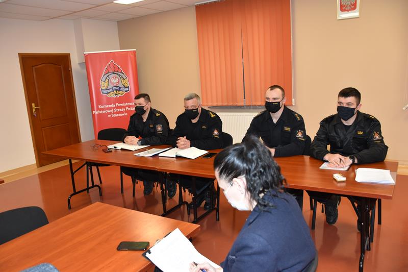 17 lutego 2022 roku w siedzibie Komendy Powiatowej Państwowej Straży Pożarnej w Staszowie miało miejsce spotkanie z wójtami, burmistrzami, przedstawicielami lokalnego samorządu, prezesami, komendantami gminnymi OSP, w sprawie przyznawania świadczenia ratowniczego i ustawy o ochotniczych strażach pożarnych. Spotkanie prowadził Komendant Powiatowy PSP w Staszowie st. bryg. Rafał Gajewicz.