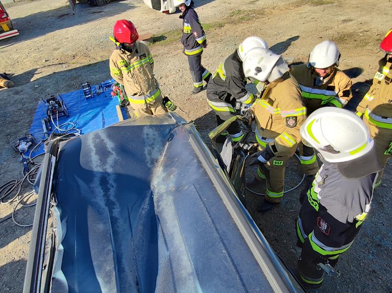 Szkolenie prowadzone było na terenie Zakładu Przerobu Złomu i Recyklingu Pojazdów Piters Motors Recykling w Łążku. W ramach doskonalenia zawodowego strażacy doskonalili swoje umiejętności w posługiwaniu się urządzeniami hydraulicznymi. Podczas warsztatów poruszono tematykę związaną z samochodami elektrycznymi i hybrydowymi.