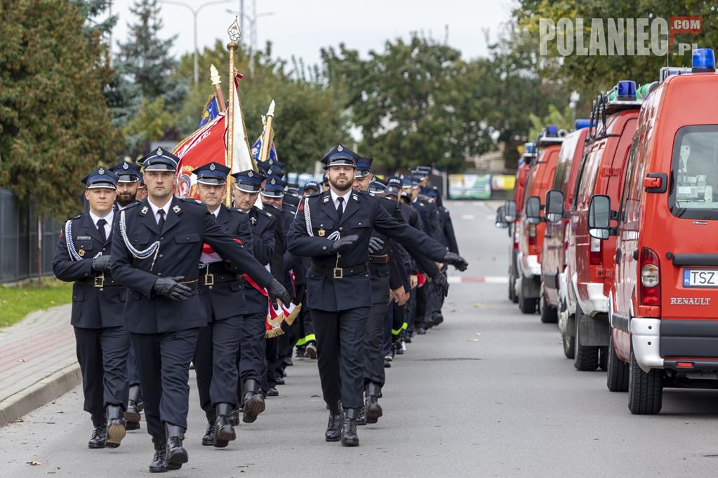 Uroczystość rozpoczęła się od wprowadzeniu pocztów sztandarowych na plac uroczystości oraz złożenia meldunku o gotowości do rozpoczęcia uroczystości zastępcy świętokrzyskiego komendanta wojewódzkiego PSP w Kielcach st. bryg. Grzegorzowi Rajcy przez druha Pawła Motyla. Następnie dokonano uroczystego podniesienia flagi państwowej na maszt i został odegrany hymn państwowy przez orkiestrę z Centrum Kultury i Sztuki w Połańcu. Przybyłych gości przywitał Burmistrz Miasta i Gminy Połaniec Jacek Nowak. Następnie ksiądz Józef Grabda dokonał poświęcenia samochodów oraz zostały wręczone akty przekazania na ręce druha prezesa Krzysztofa Marczewskiego oraz druha prezesa Zbigniewa Spałę .