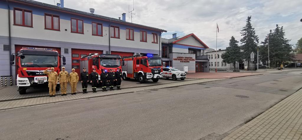 Gdy nadeszła godzina „W” zawyły syreny, włączono światła błyskowe oraz sygnały dźwiękowe w pojazdach pożarniczych, a zmiana służbowa oddała hołd Powstańcom Warszawskim.