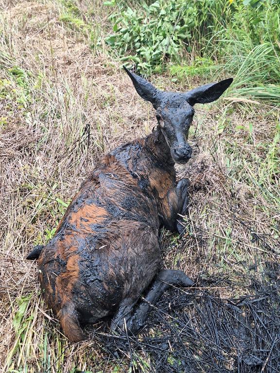 Uwięziona sarna w cieku wodnym