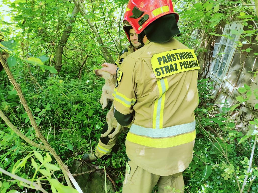Dyżurny SKKP w Staszowie niezwłocznie zadysponował do zdarzenia jeden zastęp z JRG Staszów oraz jeden zastęp OSP. Po przybyciu na miejsce zdarzenia Kierujący Działaniem Ratowniczym ustalił, że w studni na głębokości ok. 2 m znajduje się uwięzione zwierzę. Działania JOP polegały na zabezpieczeniu miejsca zdarzenia, rozstawieniu trójnogu ratowniczego i opuszczeniu ratownika wyposażonego w aparat ochrony dróg oddechowych celem wydobycia psa na powierzchnię. Po wydobyciu psa na powierzchnię zabezpieczono studnię, a zwierzę w dobrej kondycji przekazano pracownikowi Urzędu gminy Rytwiany.