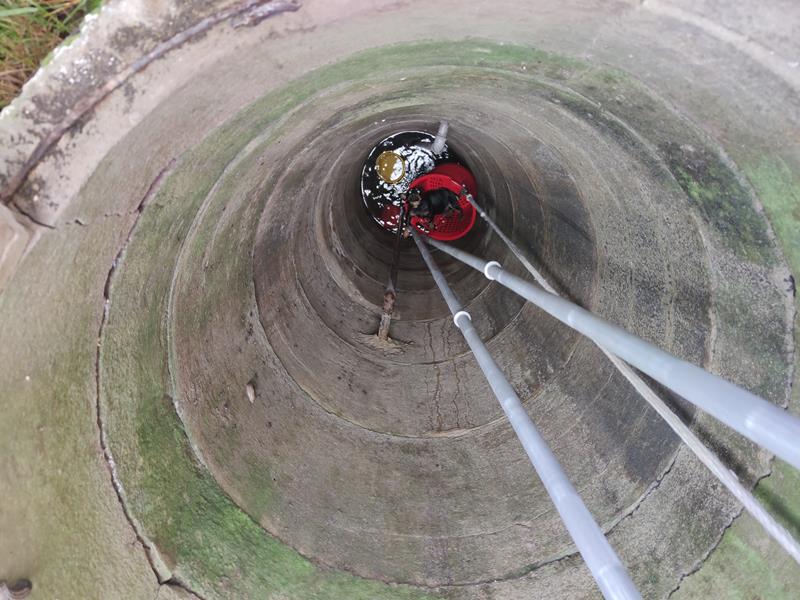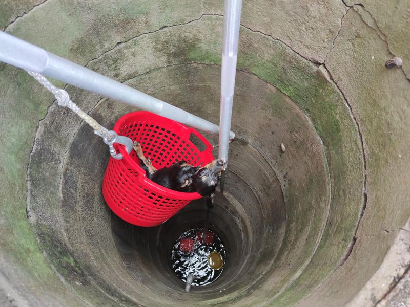 Uwięziony pies w studni w miejscowości Wiśniowa , pow. staszowski