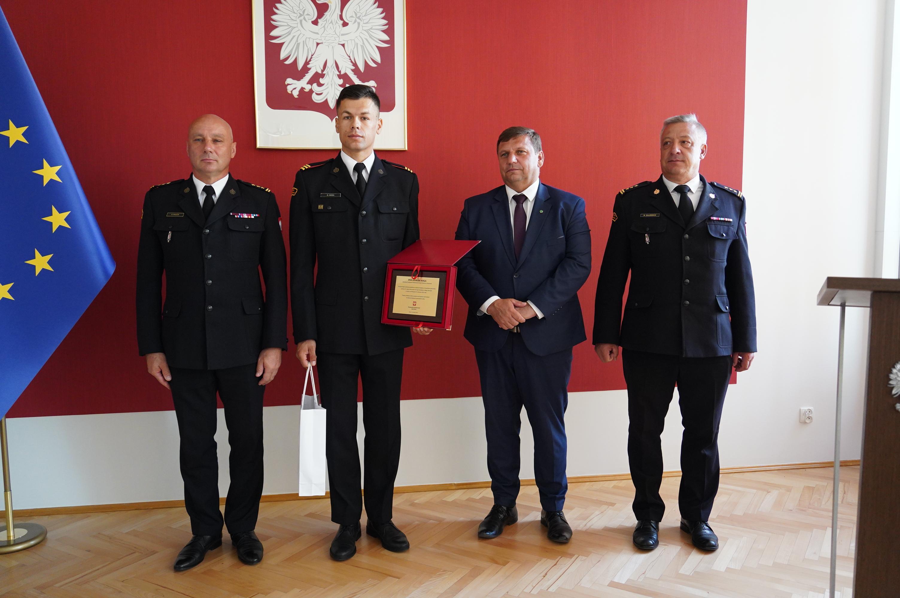 Wojewoda Świętokrzyski nagrodził st. sekc. Damiana Nogę z KP PSP w Staszowie