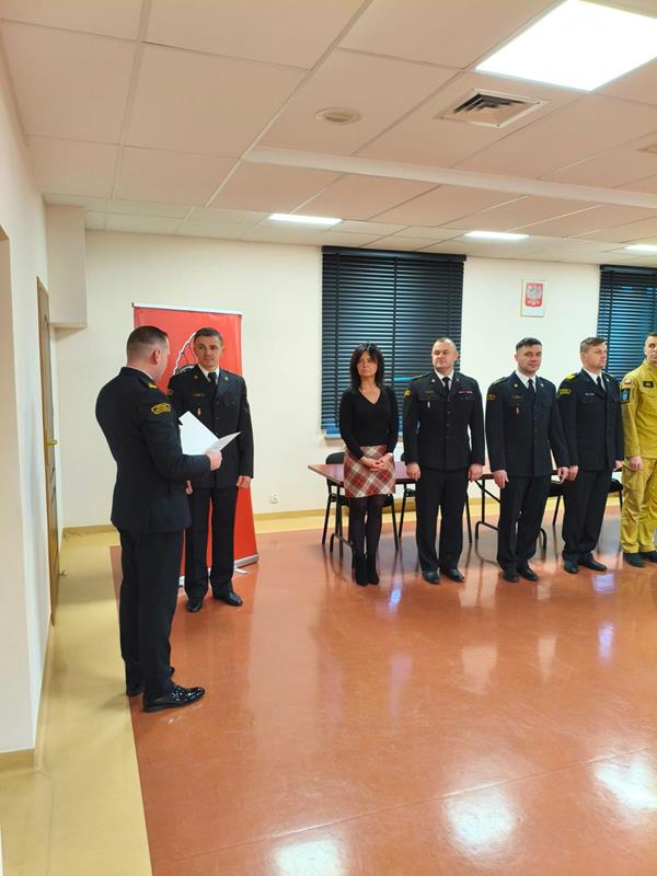 W trakcie zbiórki Komendant Powiatowy PSP w Staszowie wręczył st. kpt. Krzysztofowi Kunysowi decyzję Komendanta Głównego Państwowej Straży Pożarnej, przyznaną za uzyskanie wysokich wyników w zawodach sportowych oraz godne reprezentowanie formacji Państwowej Straży Pożarnej na arenie krajowej.