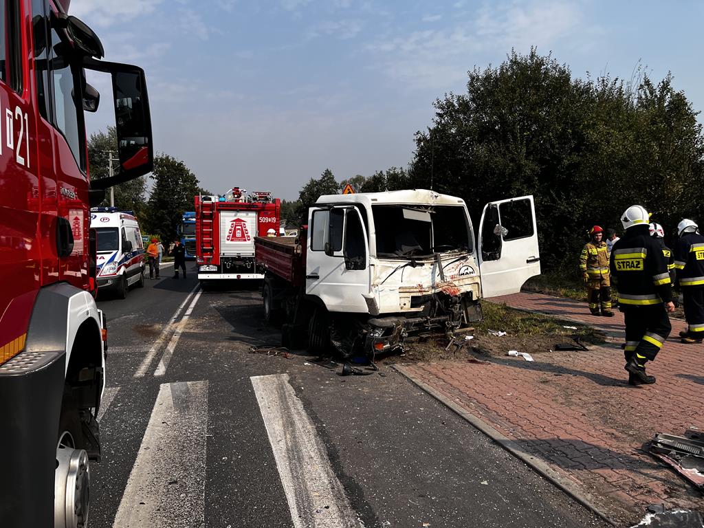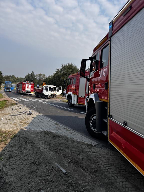 Po przybyciu na miejsce zdarzenia zastępów straży pożarnej stwierdzono, że doszło do zderzenia dwóch pojazdów ciężarowych. Pojazdami podróżowali tylko kierowcy. Działania zastępów SP polegały na zabezpieczeniu miejsca zdarzenia i pomocy zespołowi ratownictwa medycznego w udzielaniu medycznych czynności ratunkowych kierowcom pojazdów. Po przebadaniu przez ZRM kierowcy zostali odwiezieni do szpitala. Dalsze działania zastępów JOP polegały na odłączeniu zasilania w pojazdach. W działaniach ratowniczych udział brało 5 zastępów jednostek ochrony przeciwpożarowej, 20 strażaków.