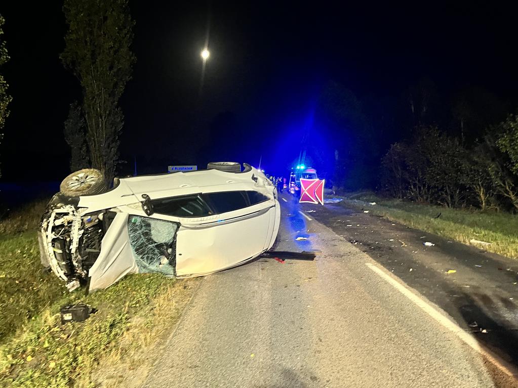 Po przybyciu na miejsce zdarzenia zastępów straży pożarnej stwierdzono, że samochód osobowy wypadł z drogi i uderzył w przydrożne drzewo. Pojazdem podróżowała jedna osoba. Działania ratowników polegały na zabezpieczeniu miejsca zdarzenia i udzieleniu kwalifikowanej pierwszej pomocy osobie poszkodowanej polegającej na ocenie stanu kobiety i rozpoczęciu RKO z użyciem AED. Dalsze działania zastępów JOP polegały na odłączeniu akumulatora w pojeździe oraz neutralizacji i sorpcji płynów pokolizyjnych. Przybyły na miejsce zdarzenia zespół ratownictwa medycznego stwierdził zgon kierującej.
