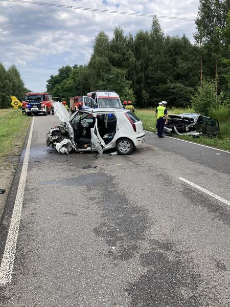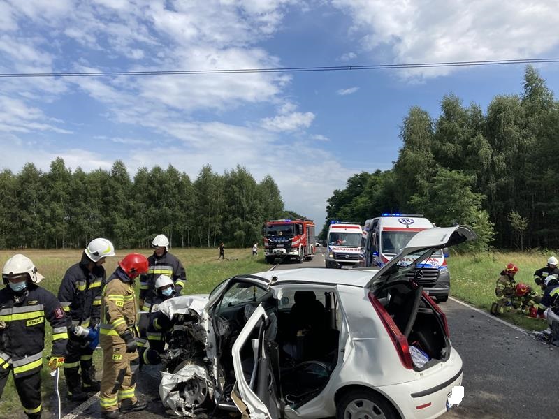 Po przybyciu na miejsce zdarzenia zastępów straży pożarnej stwierdzono, że doszło do zderzenia dwóch samochodów osobowych. Pojazdami podróżowało łącznie 5 osób w tym dwoje dzieci. Działania zastępów straży pożarnej polegały na zabezpieczeniu miejsca zdarzenia, wykonaniu dostępu i ewakuacji jednej osoby z samochodu osobowego, udzieleniu kwalifikowanej pierwszej pomocy wszystkim podróżującym, odłączeniu akumulatorów w pojazdach, oraz neutralizacji płynów po kolizyjnych. Do szpitala, przez zespoły ratownictwa medycznego z miejsca zdarzenia zabranych zostało trzy osoby i dziecko.