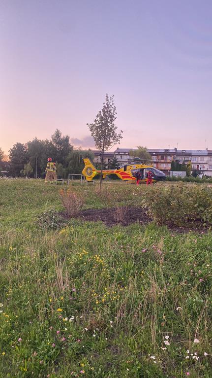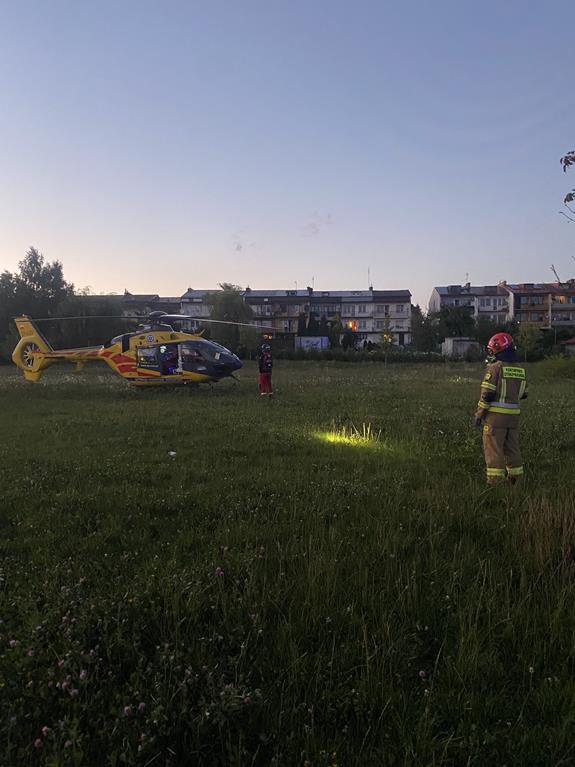 Po dojeździe na miejsce zdarzenia zastępów straży pożarnej i po przeprowadzeniu wstępnego badania urazowego ustalono, że z chłopcem jest kontakt werbalny i uskarża się on na ból dolnego odcinka kręgosłupa oraz ból głowy. Strażacy udzielili mu kwalifikowanej pomocy przedmedycznej, po czym przygotowali lądowisko dla śmigłowca LPR.