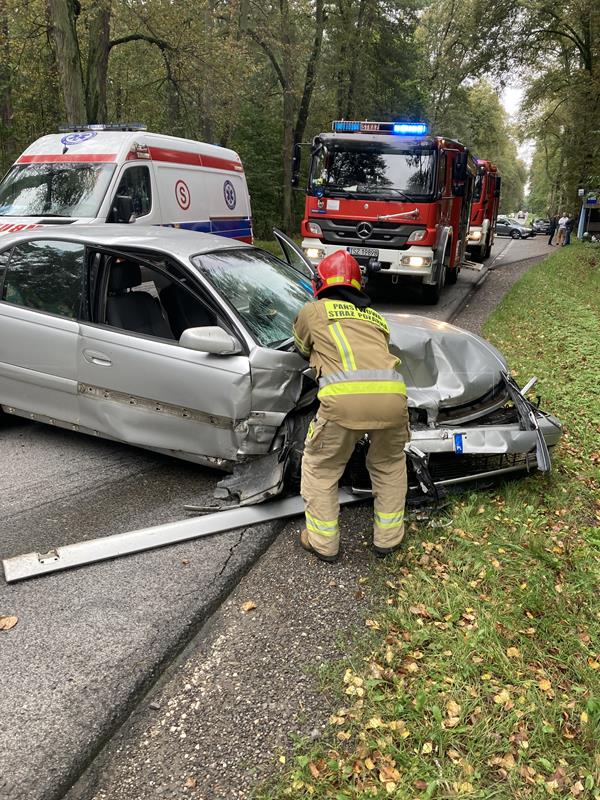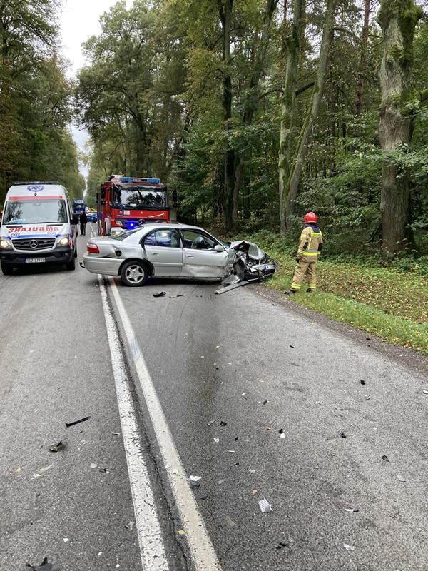 Po przybyciu na miejsce zdarzenia zastępów straży pożarnej stwierdzono, że doszło do zderzenia dwóch samochodów osobowych. Pojazdami podróżowało łącznie 4 osoby w tym dwuletnie dziecko. Wszystkie osoby podróżujące w momencie przyjazdu zastępów straży pożarnej znajdowały się poza pojazdami. Działania ratowników polegały na zabezpieczeniu miejsca zdarzenia i udzieleniu kwalifikowanej pierwszej pomocy wszystkim podróżującym, odłączeniu akumulatorów w pojazdach oraz sorpcji i neutralizacji płynów po kolizyjnych. Do szpitala, przez zespoły ratownictwa medycznego z miejsca zdarzenia odwieziona została kobieta z dzieckiem.