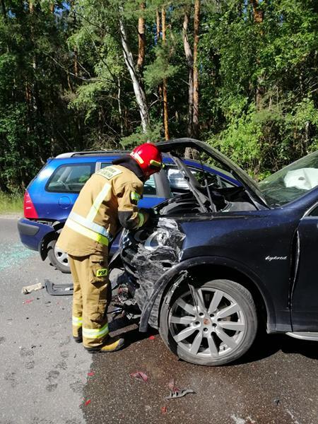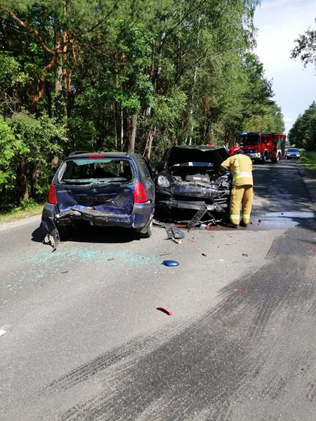 Po przybyciu na miejsce zdarzenia zastępów straży pożarnej stwierdzono, że doszło do zderzenia trzech samochodów osobowych. Pojazdami podróżowało łącznie 4 osoby, które w momencie przyjazdu SP znajdowały się poza pojazdami. Działania ratowników polegały na zabezpieczeniu miejsca zdarzenia, udzieleniu kwalifikowanej pomocy przedmedycznej osobom podróżującym oraz odłączeniu akumulatorów w pojazdach. Po dojeździe ZRM dwie osoby po przebadaniu zostały zabrane do szpitala