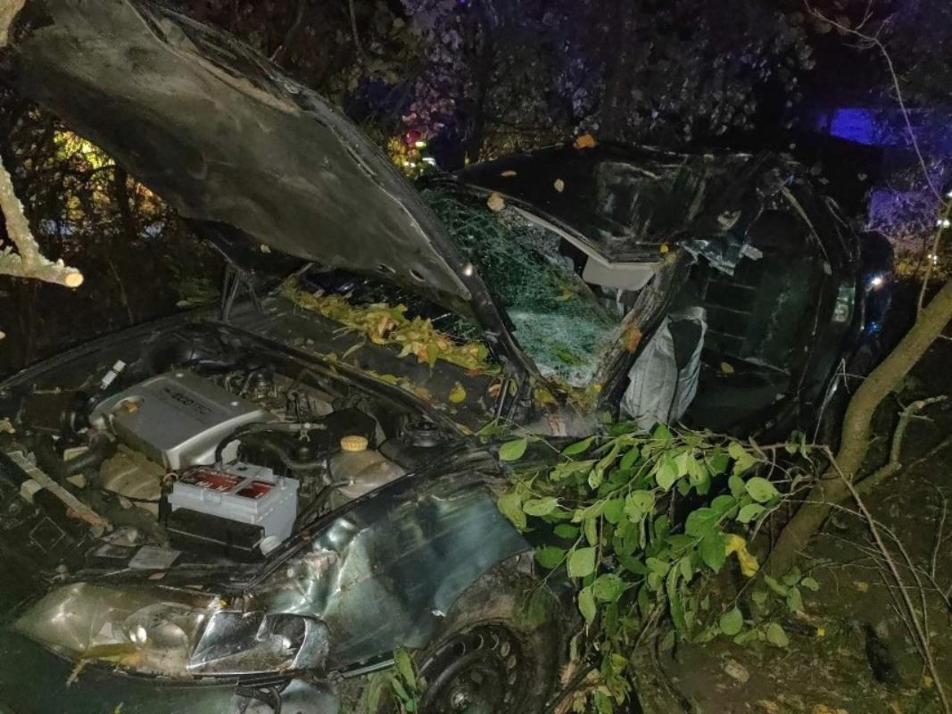 Po przybyciu na miejsce zdarzenia zastępów straży pożarnej stwierdzono, że samochód osobowy uderzył w drzewo. Pojazdem podróżowały 4 osoby, w tym 2 dzieci. Działania ratowników polegały na zabezpieczeniu miejsca zdarzenia, odłączeniu akumulatora w pojeździe oraz wykonaniu dostępu przy użyciu narzędzi hydraulicznych do uwięzionej osoby. Po przebadaniu przez Zespołu Ratownictwa Medycznego trzy osoby poszkodowane zostały przewiezione do szpitala.