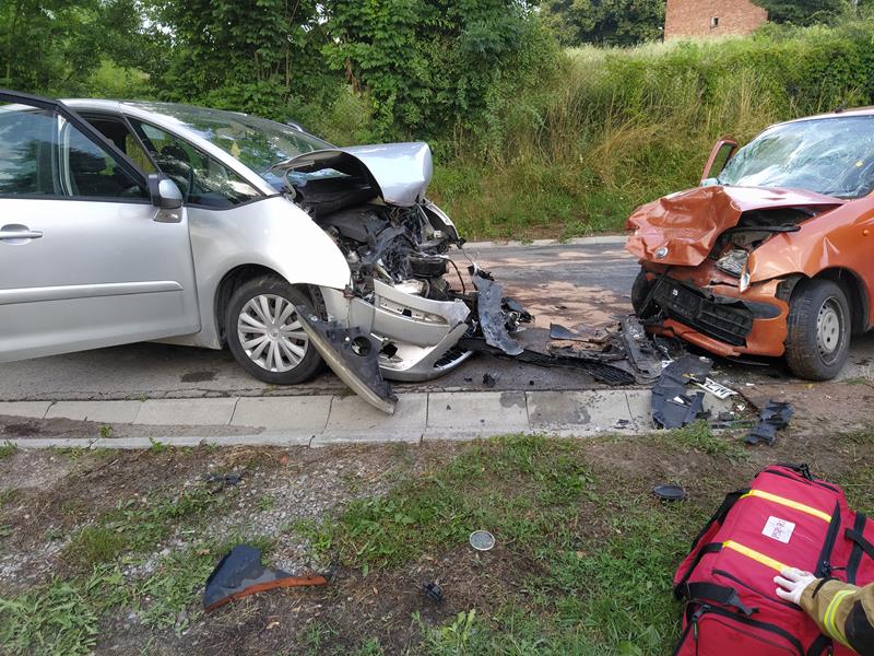 Po przybyciu na miejsce zdarzenia zastępów straży pożarnej stwierdzono, że doszło do zderzenia dwóch samochodów osobowych. Pojazdami podróżowało łącznie 6 osób. Działania zastępów straży pożarnej polegały na zabezpieczeniu miejsca zdarzenia, wykonaniu dostępu i ewakuacji dwóch osób poszkodowanych z fiata cinquecento, udzieleniu kwalifikowanej pierwszej pomocy wszystkim podróżującym, odłączeniu akumulatorów w pojazdach, oraz sorpcji płynów pokolizyjnych. Do szpitala, przez cztery zespoły ratownictwa medycznego zabranych z miejsca zdarzenia zostało cztery osoby.