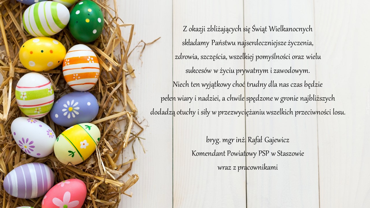Życzenia Wielkanocne Komendanta Powiatowego Państwowej Straży Pożarnej w Staszowie Zdjęcia (1) Pokaż zdjęcie 1 z galerii.