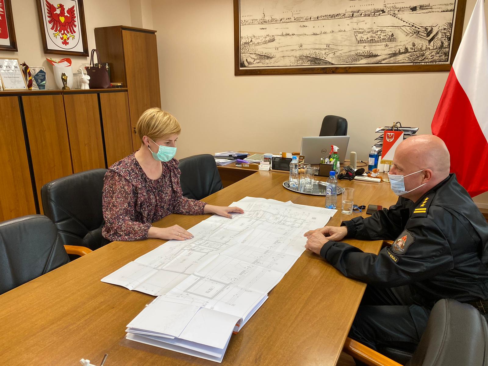 W dniu 14.05.2021 r. w Urzędzie Miejskim w Drezdenku odbyło się spotkanie Komendanta Powiatowego PSP w Strzelcach Krajeńskich - st. bryg. Tomasza Górniaka z Panią Burmistrz Drezdenka - Karoliną Piotrowską.