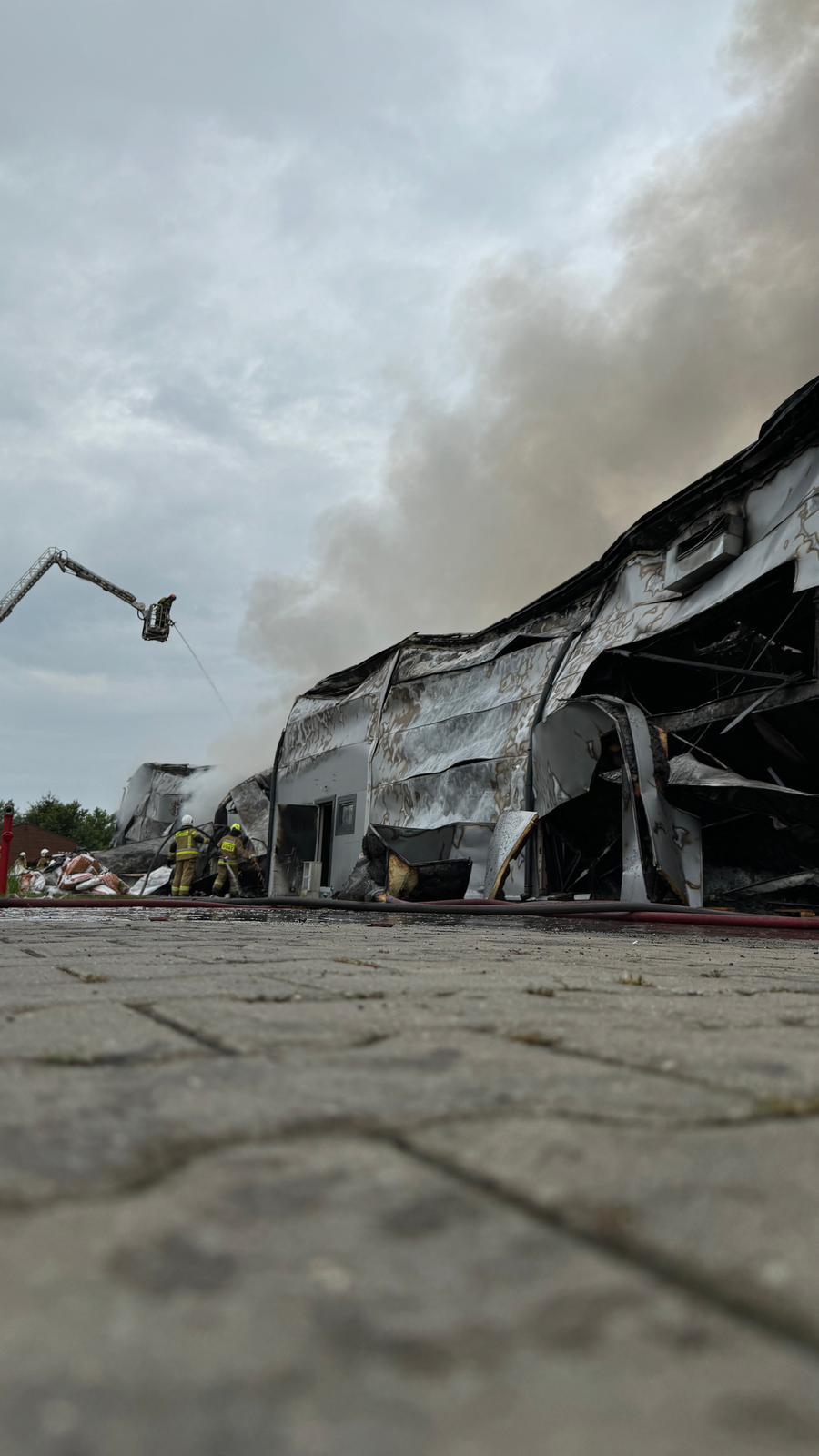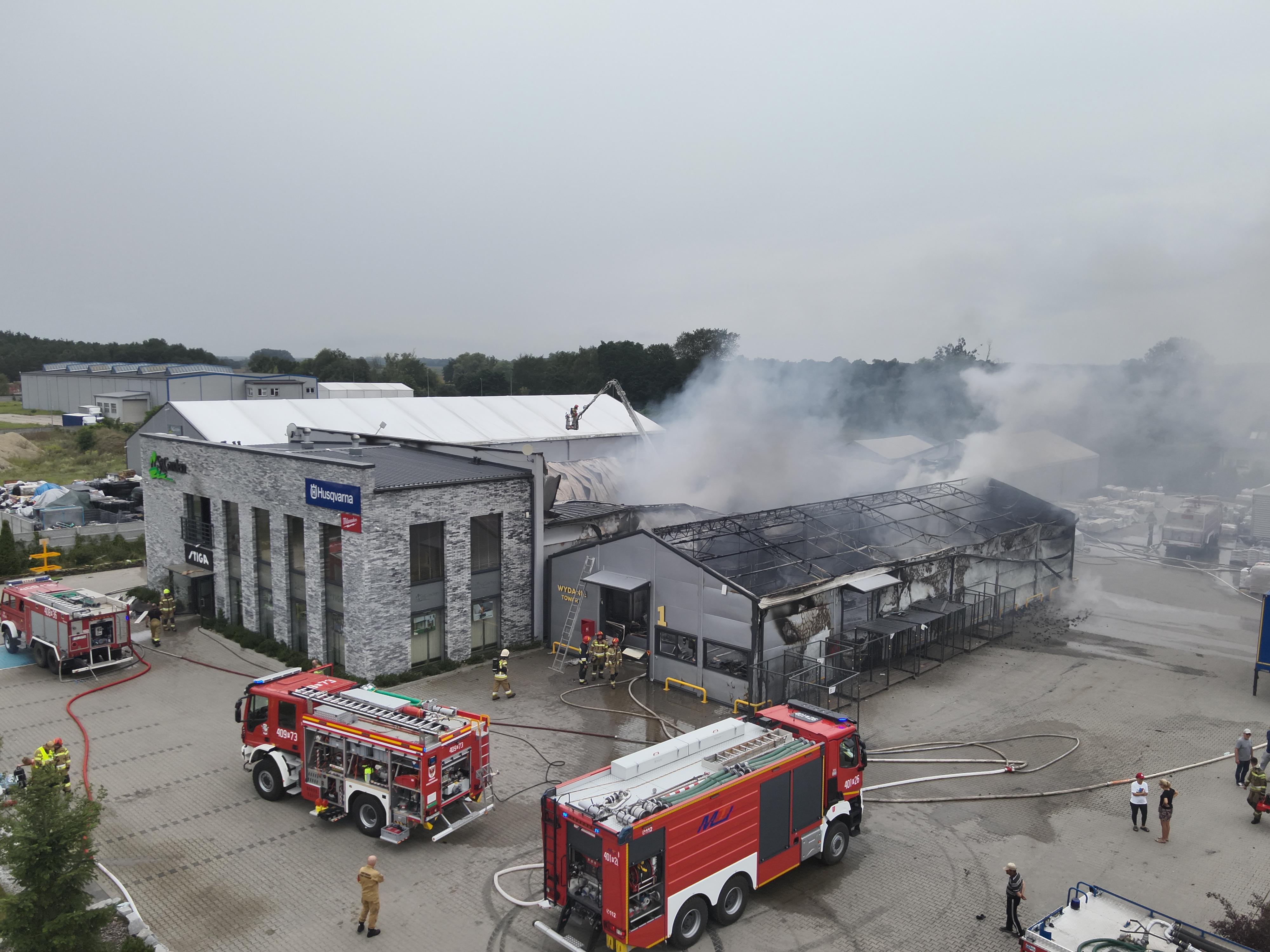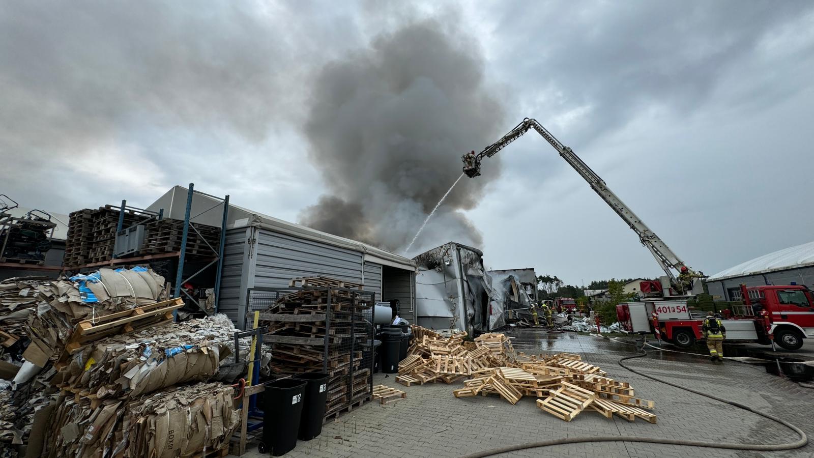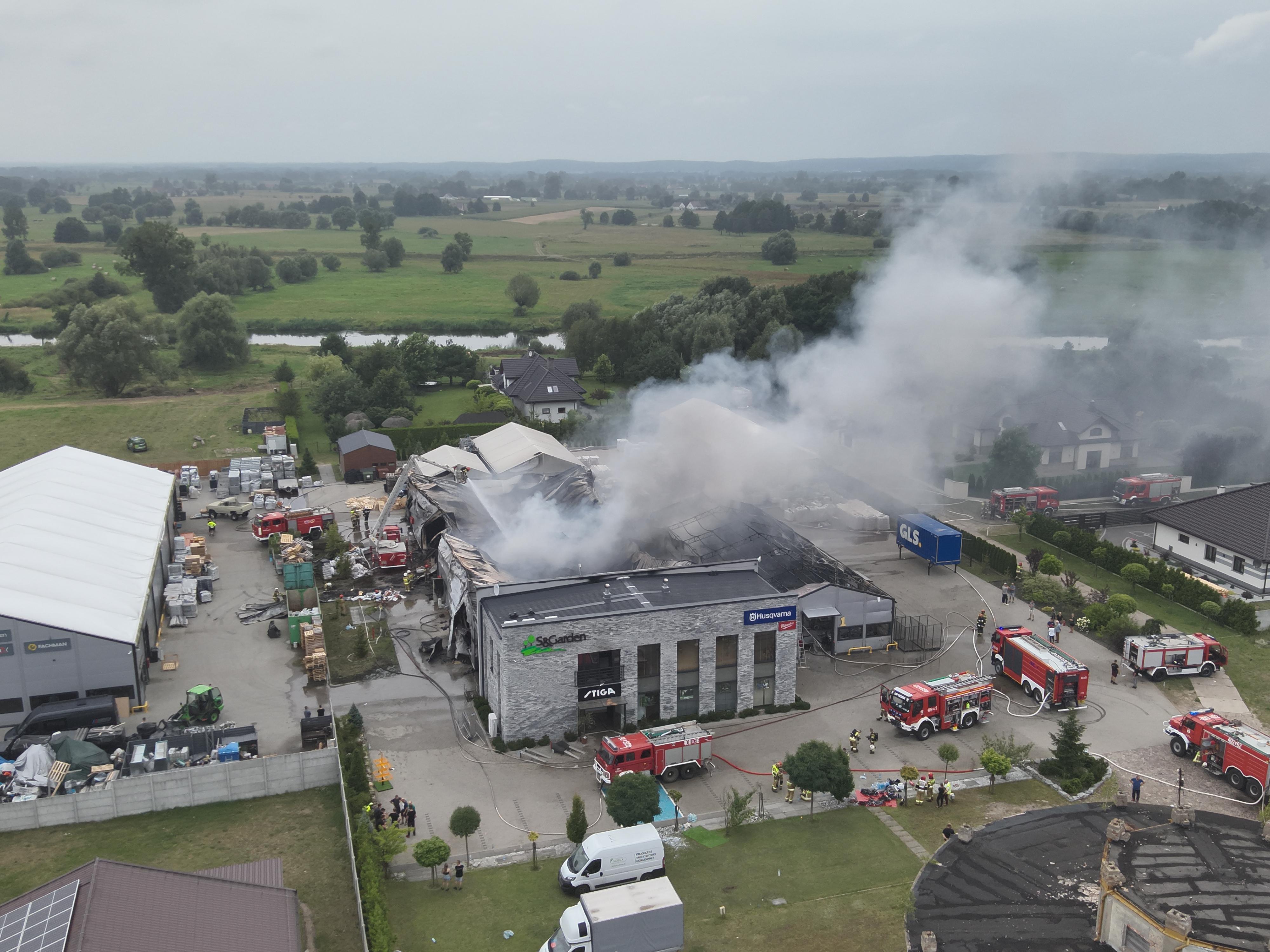 Zgłoszenie o pożarze hali magazynowej wpłynęło za pośrednictwem Wojewódzkiego Centrum Powiadamiania ratunkowego o godz. 11:42 w dniu 27.07.2024 r. Z wstępnych informacji wynikało, że pali się hala magazynowa, a płomienie widoczne są na dachu budynku. Na miejsce natychmiast zadysponowanych w pierwszy rzucie zostało 10 pojazdów gaśniczych i podnośnik oraz grupa operacyjna z dronem. W trakcie dojazdu jednostek ochrony przeciwpożarowej zadymienie z miejsca pożaru widoczne było z odległości ponad 20 km. Pierwsze zadysponowane jednostki już po 5 minutach od zgłoszenia weszły do działań.