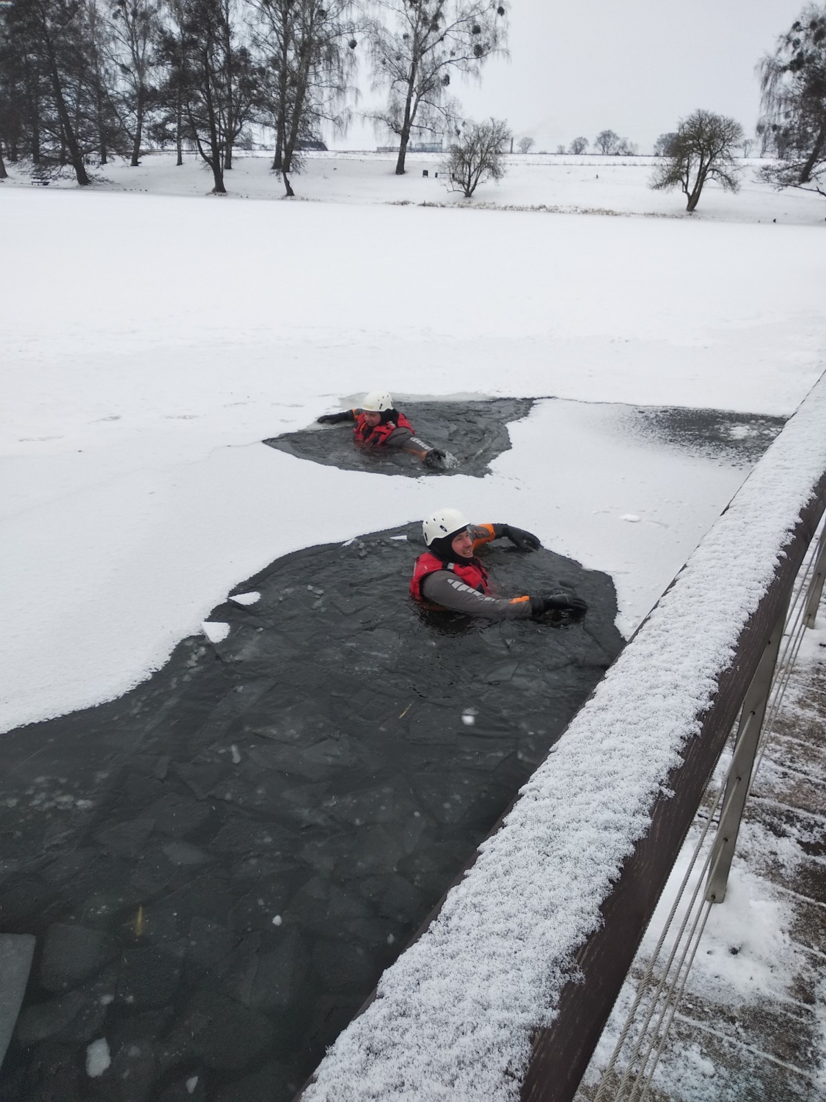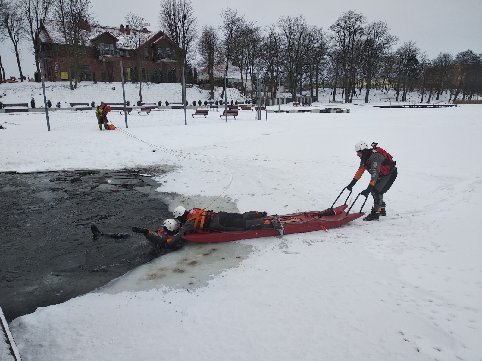 Ćwiczenia z zakresu ratownictwa wodnego w zimie