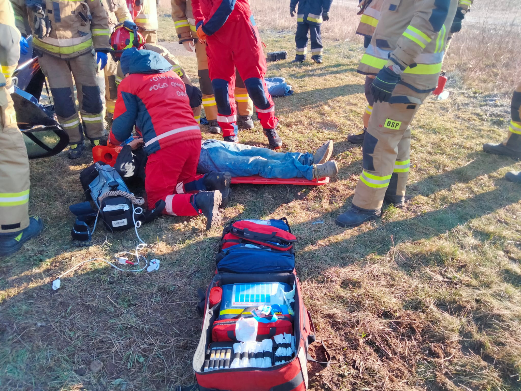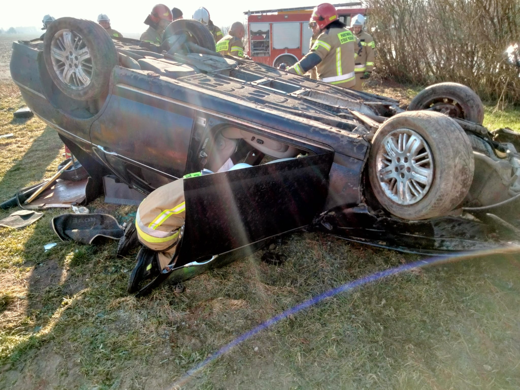 Dnia 01 marca tuż przed godziną 9:00 do Stanowiska Kierowania Komendanta Powiatowego Państwowej Straży Pożarnej w Strzelcach Krajeńskich wpłynęło zgłoszenie o dachowaniu samochodu osobowego przed miejscowością Bobrówko. Dyżurny natychmiast zadysponował 3 zastępy straży pożarnych, w tym 2 z JRG w Strzelcach Krajeńskich oraz dowódcę tej jednostki. Po dotarciu na miejsce zdarzenia KDR stwierdził, że doszło do dachowania pojazdu, którym podróżowały 3 osoby. Dwie z nich opuściły pojazd samodzielnie przed przybyciem JOP. Jedna osoba pozostawała w środku pojazdu. Działania zastępów polegały na zabezpieczeniu miejsca zdarzenia, zabezpieczeniu przeciwpożarowym i stabilizacji pojazdu, a także udzieleniu Kwalifikowanej Pierwszej Pomocy osobom poszkodowanym. Na miejsce przybył śmigłowiec Lotniczego Pogotowia Ratunkowego. We współpracy z lekarzem strażacy ewakuowali osobę poszkodowaną z pojazdu i pomogli w transporcie do śmigłowca. Na miejscu zdarzenia dotarli również funkcjonariusze Policji, celem ustalenia przyczyn i okoliczności wypadku.