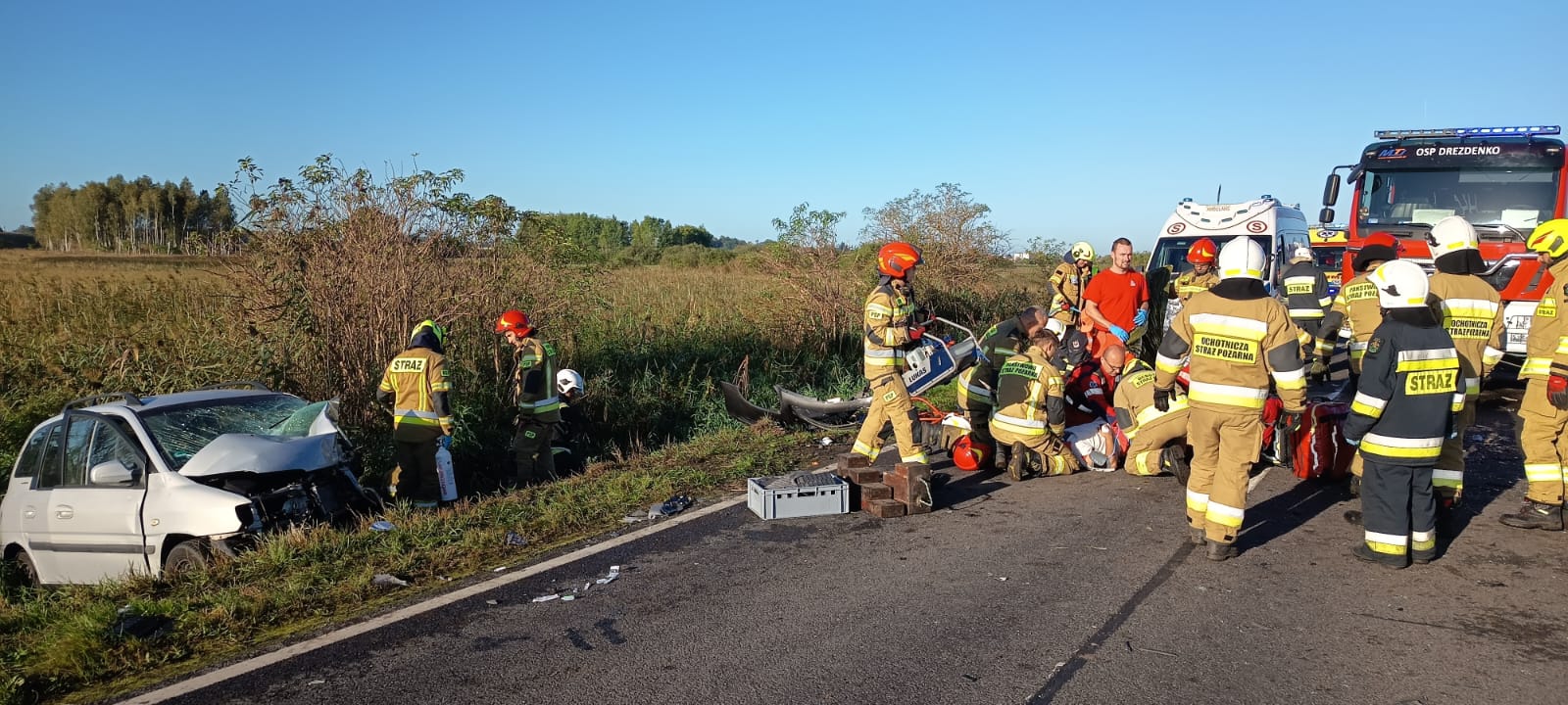 Informacja o zdarzeniu wpłynęła do Stanowiska Kierowania Komendanta Powiatowego PSP w Strzelcach Krajeńskich o godz. 7:45 w dniu 23.09.2025 r. Dyżurny stanowiska kierowania zadysponował 5 zastępów straży pożarnych, w tym: najbliższą jednostkę OSP, najbliższą jednostkę OSP z Krajowego Systemu Ratowniczo-Gaśniczego oraz zastępy z Jednostki Ratowniczo-Gaśniczej Państwowej Straży Pożarnej w Strzelcach Krajeńskich. Dodatkowo na miejsce skierowano Zespoły Ratownictwa Medycznego, śmigłowiec Lotniczego Pogotowia Ratunkowego oraz patrol Policji. Droga została całkowicie zablokowana w obu kierunkach.
