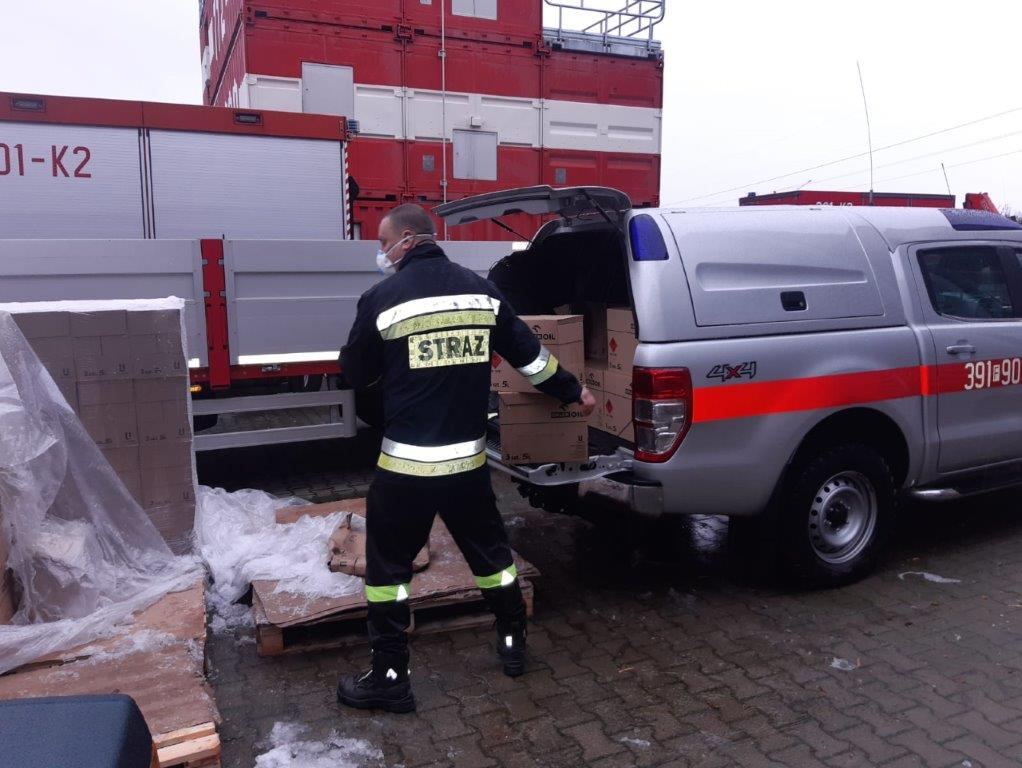 Kolejna dostawa maseczek i płynu do dezynfekcji dla strażaków