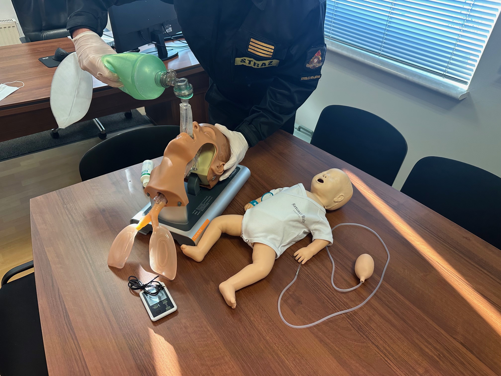 Podczas wydarzenia samorządowcy przekazali na ręce Komendanta Powiatowego bryg. Wojciecha Witkowskiego nowoczesny zestaw ćwiczebny do Kwalifikowanej Pierwszej Pomocy. W skład zestawu wchodzi głowa do intubacji oraz fantom niemowlęcia.