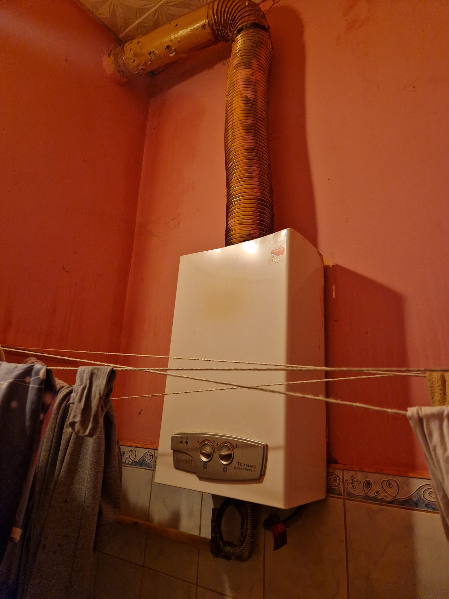- Niesprawny, nie poddawany okresowym przeglądom podgrzewacz – zwany także potocznie piecykiem gazowym lub termą gazową.