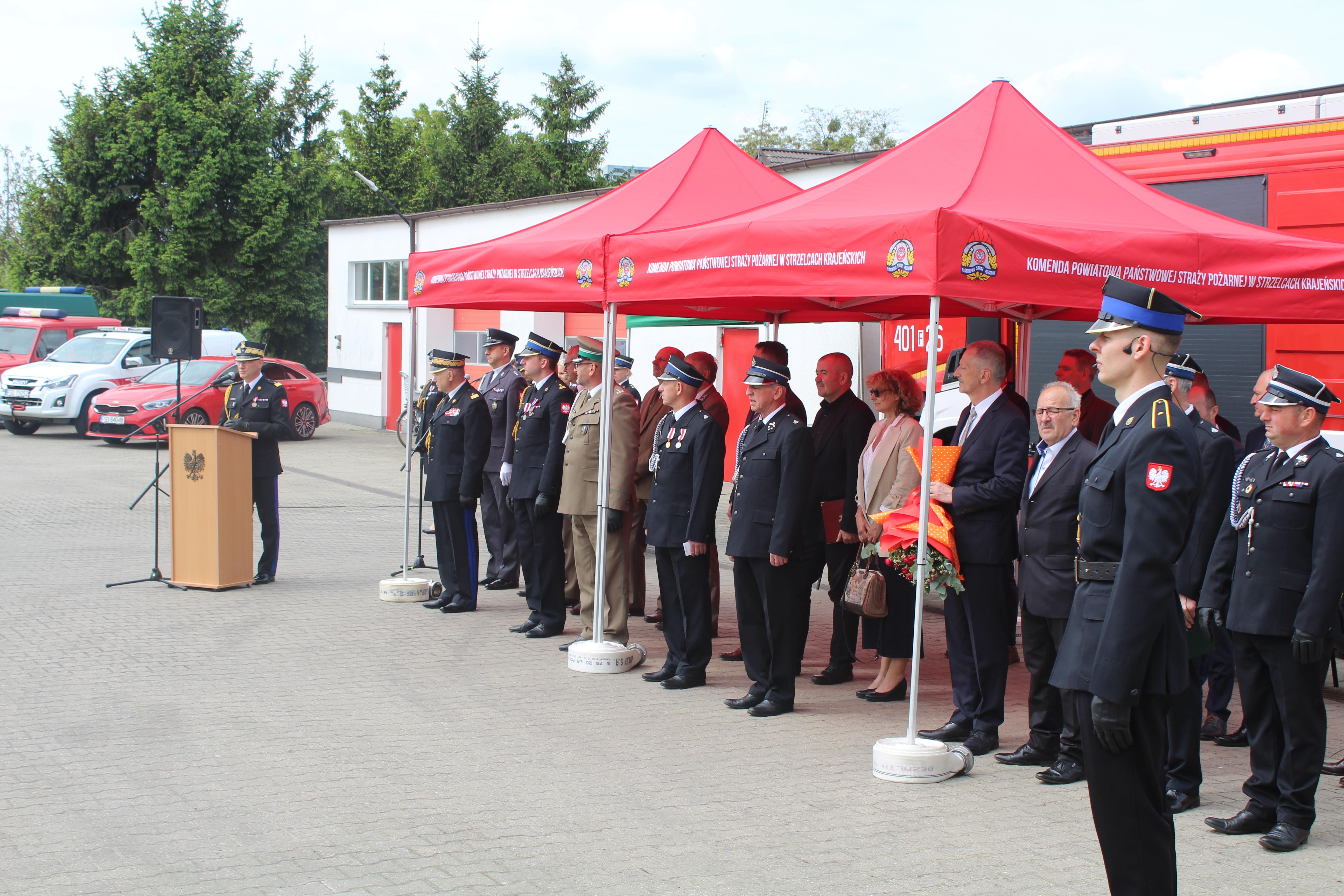 W dniu 10.05.2024 r. w Komendzie Powiatowej Państwowej Straży Pożarnej w Strzelcach Krajeńskich odbył się uroczysty apel z okazji obchodów Dnia Strażaka. Przybyły na uroczystość Lubuski Komendant Wojewódzki PSP w Gorzowie Wlkp. – nadbryg. Janusz Drozda dokonał przeglądu pododdziałów zgromadzonych na placu, po czym nastąpiło uroczyste podniesienie flagi państwowej na maszt wraz z odegraniem Hymnu Państwowego.